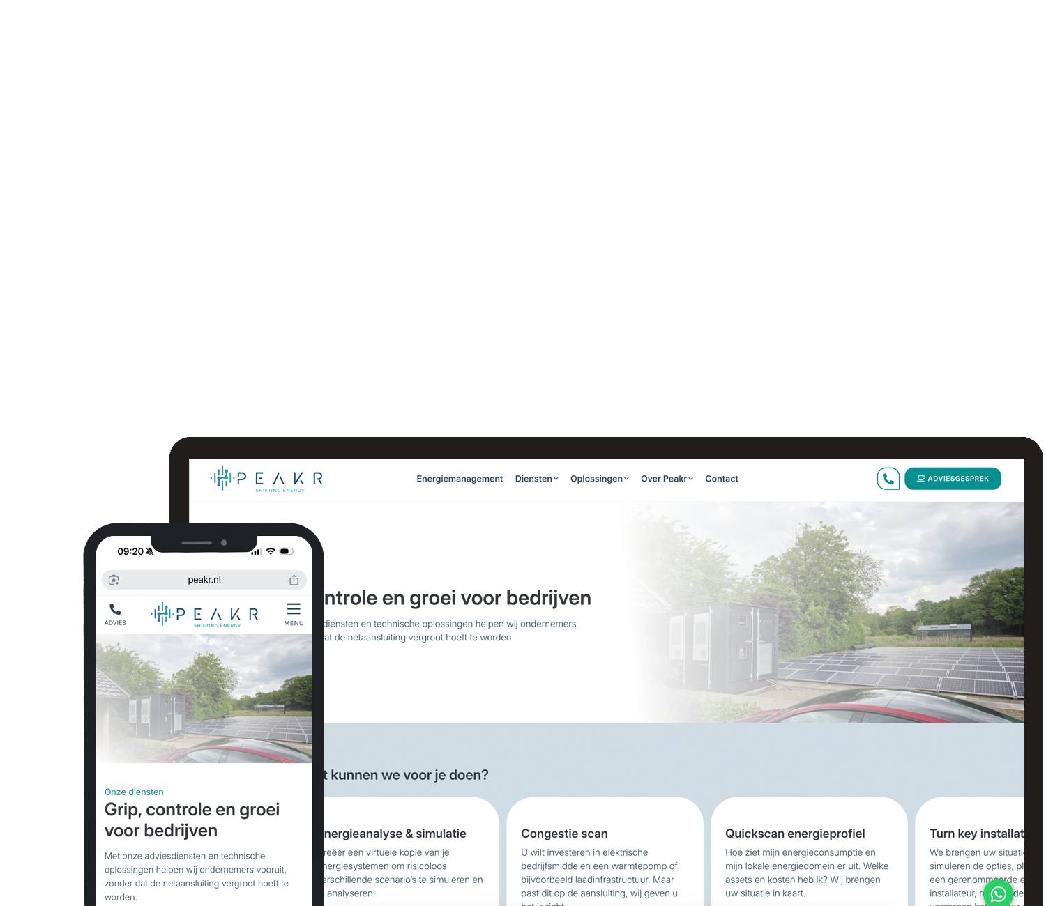 Voor Peakr ontwikkelde ik een nieuwe website die hun positie als specialist in energieadvies en slimme energiesystemen krachtig neerzet. De website helpt bezoekers om direct te begrijpen wat Peakr doet, voor wie ze werken en hoe de aanpak van Peakr voor hun bedrijf kan worden ingezet.
